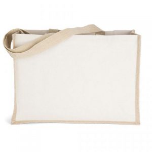 Our Cotton and Jute Tote Bag is a stylish and sturdy reusable bag that features generous imprint area for your logo, paired with beautiful natural colors. The colors are one of the features that Ashley loved the most. “I love the light natural color the cotton has, and the jute sides are such a pretty compliment to it.” If you’re a fan of natural materials like cotton, this may be the bag for you! It’s showcases how simple yet stylish a cotton tote can be.